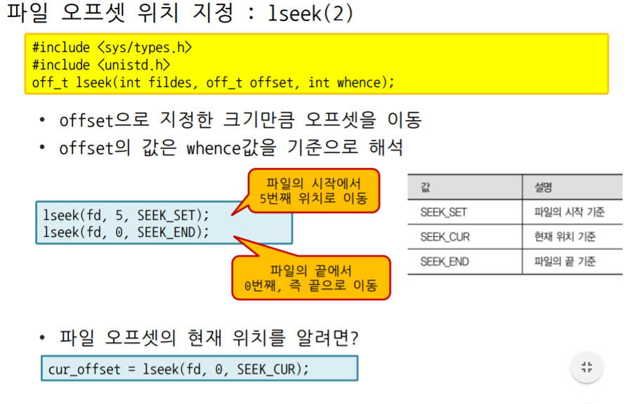 2. 파일 오프셋 위치 지정.=lseek