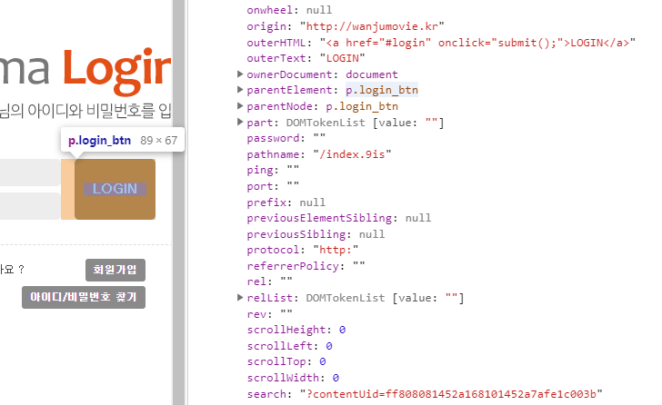 WB.document.querySelectorAll("a")[31].click() ;로그인정보를 서버에 전송합니다.
