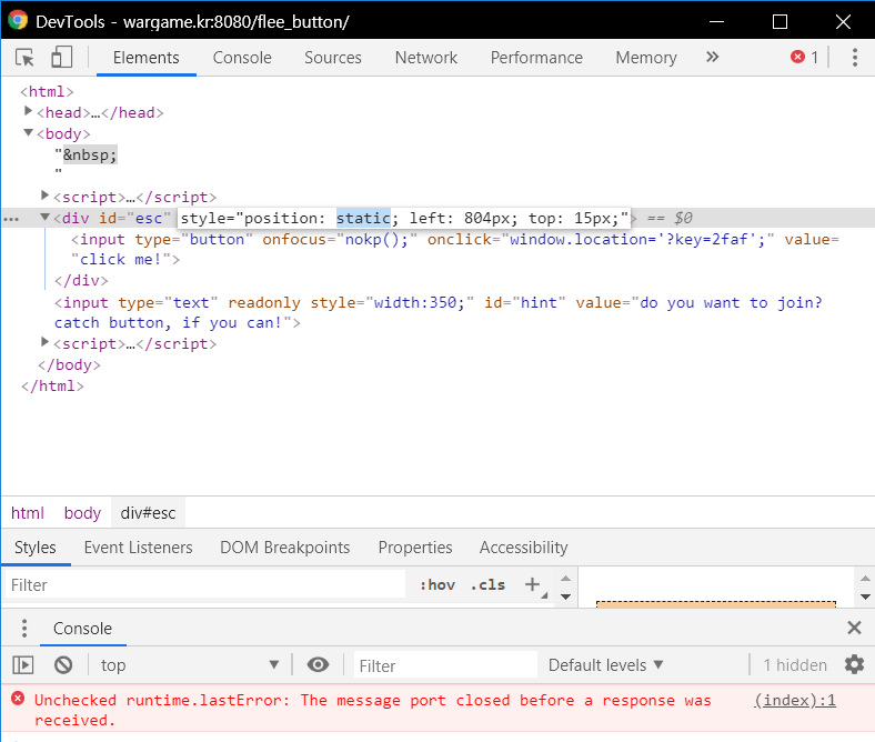 오늘은 wargame.kr 이라는 사이트의 flee button 문제를 풀어보려고 합니다.