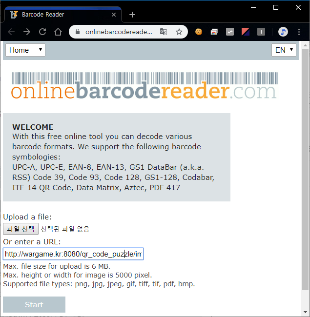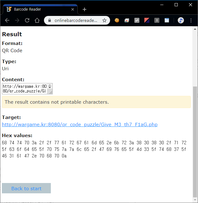위의 사이트에서 해당 qr코드의 링크를 넣고 start!!
