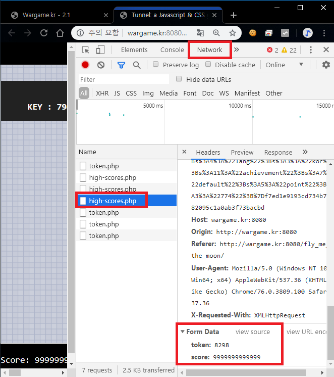 게임오버가 발생하면 high-scores.php가 생기는데 이 score를 원하는 점수로 변조하면 해결할 수 있습니다.