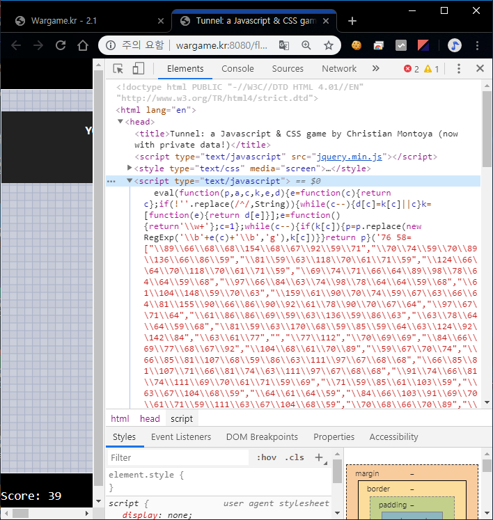Btunnelgame의 매개변수로 있는 _0x32bb[2]를 좀 더 위에서 찾아보았습니다.