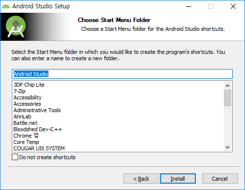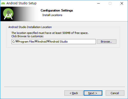 안드로이드 스튜디오가 설치될 경로를 설정해줍니다.