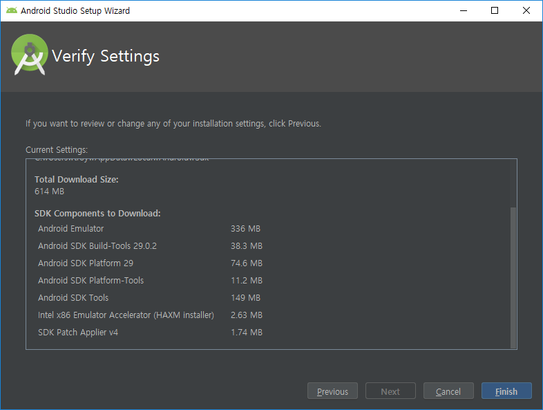 이렇게 안드로이드 스튜디오의 설치가 끝났습니다.