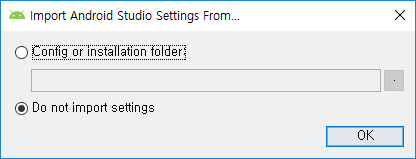 전에 쓰던 안드로이드 스튜디오가 없으므로 Do not import settings로 선택하고 ok를 눌렀습니다.