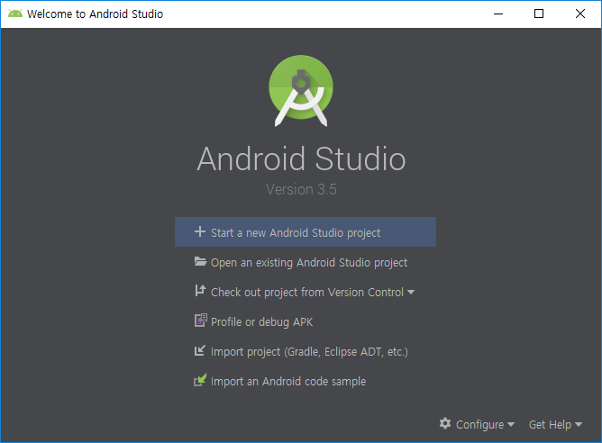 오늘은 안드로이드 스튜디오 3.5를 설치해봤습니다.