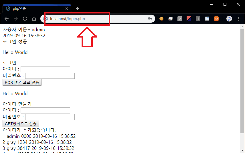 이 Get방식의 단점은 보시면 알겠지만 URL로 전달되므로 전달되는 값이 드러나는 것 입니다.