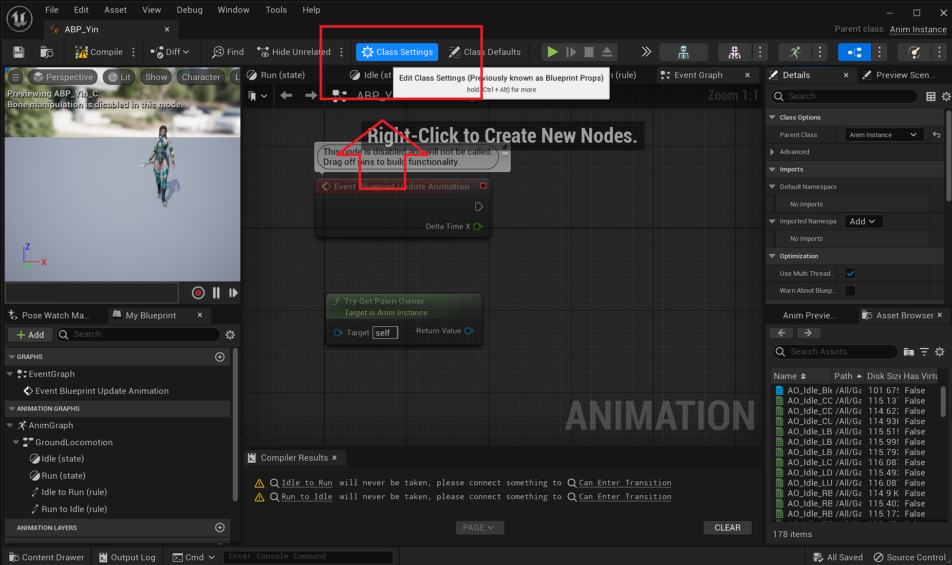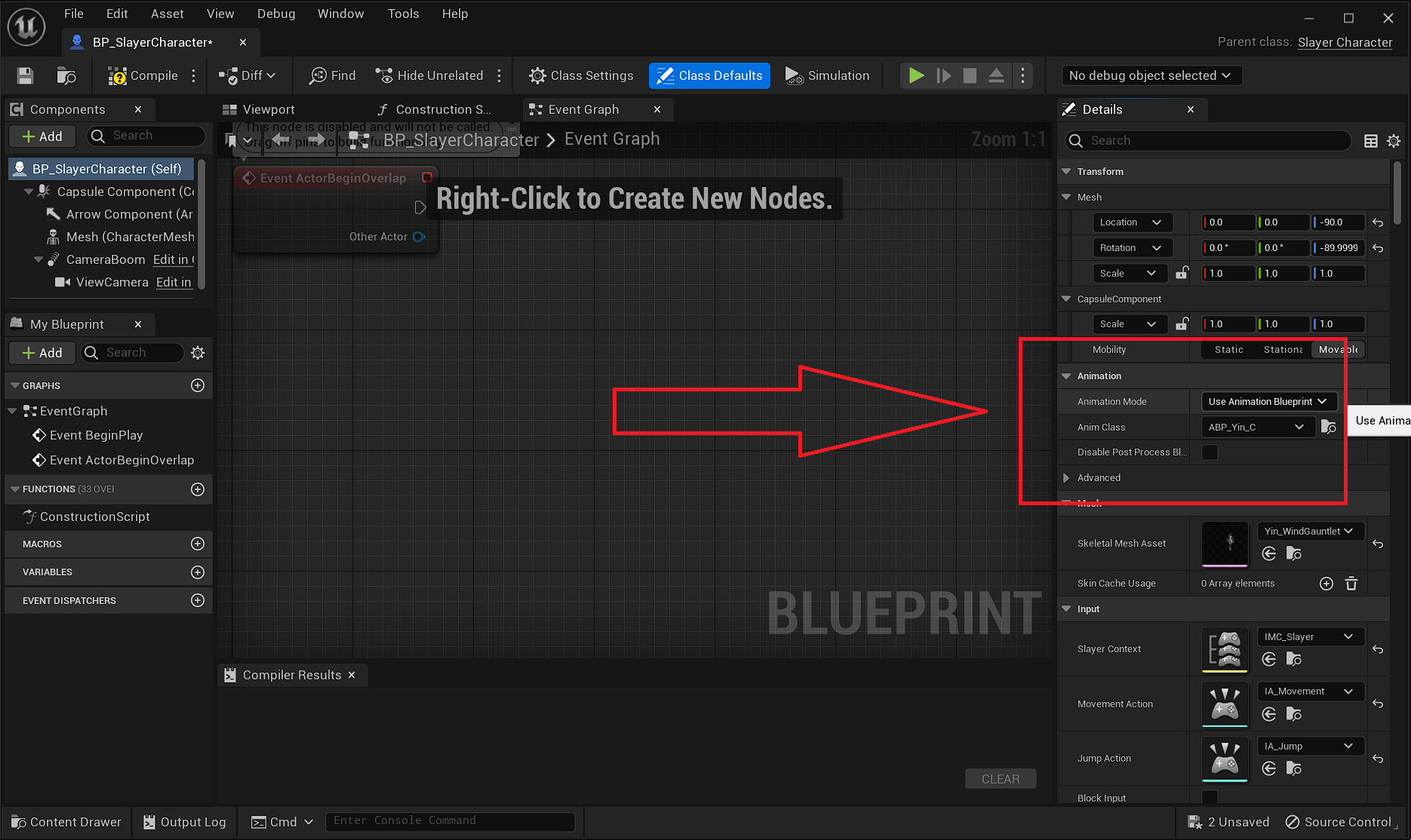 Class Settings를 누르고 Parent Class를 SlayerAnimInstance로 변경해주었습니다.