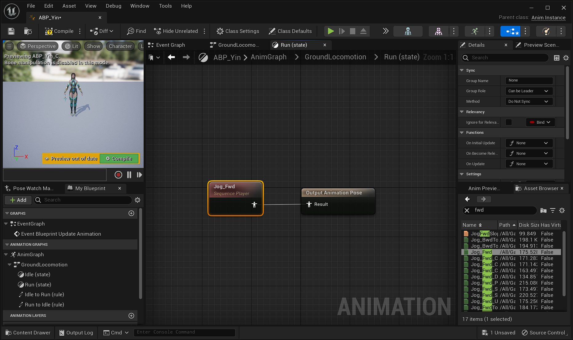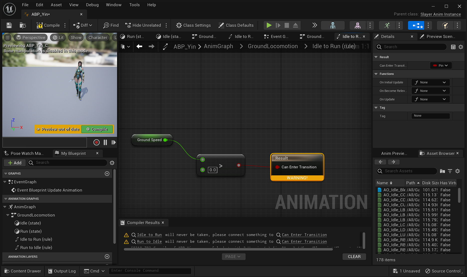 이 ABP_Yin은 SlayerAnimInstance를 상속받았으니 GroundSpeed를 가져올 수 있습니다.