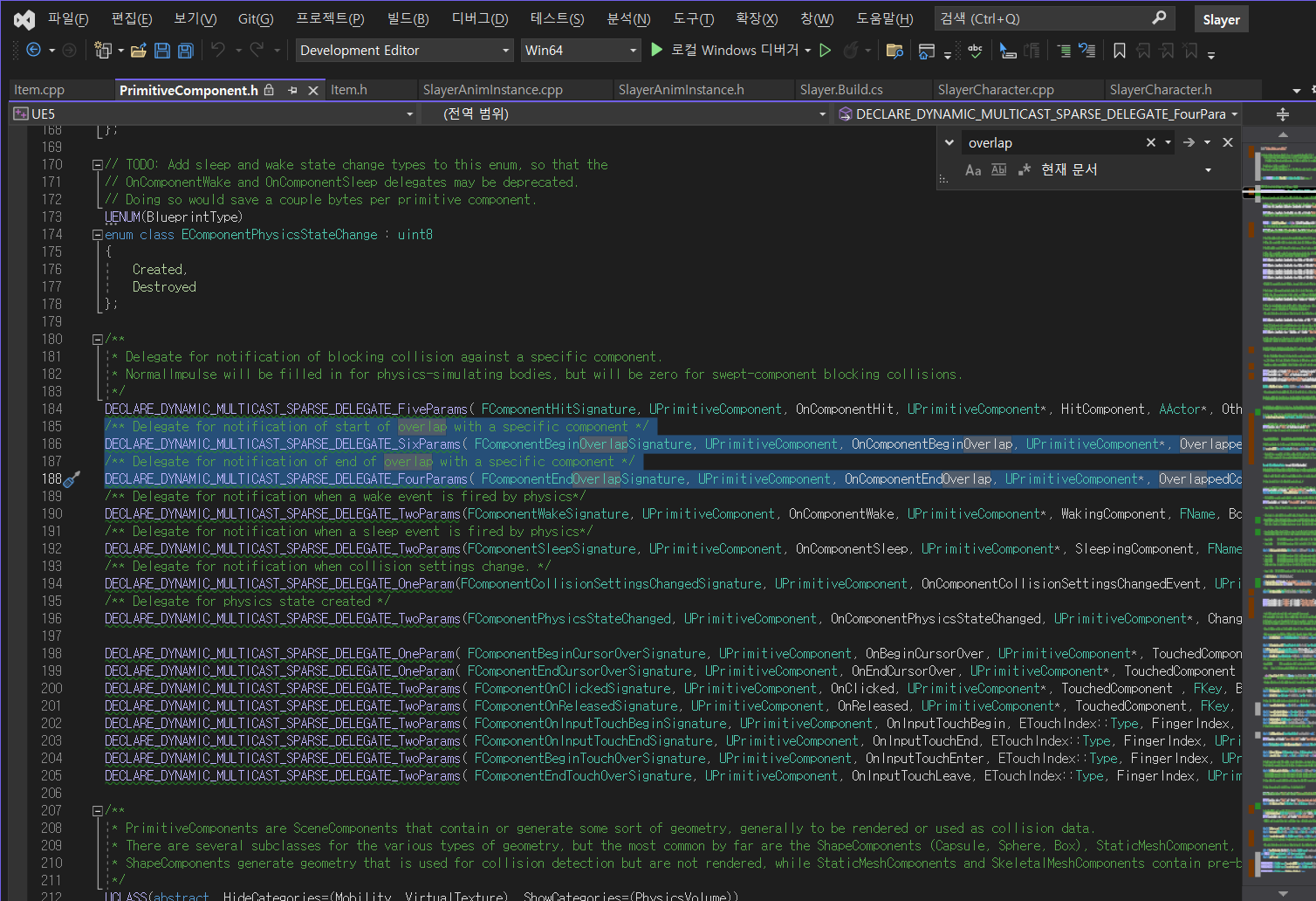 먼저 PrimitiveComponent.h로 들어가서 overlap어쩌고 있는부분의 매개변수를 복사해 옵니다.