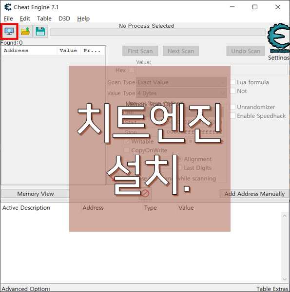 해당 글에서 다운받는 치트엔진은 무설치 파일이 아닙니다.